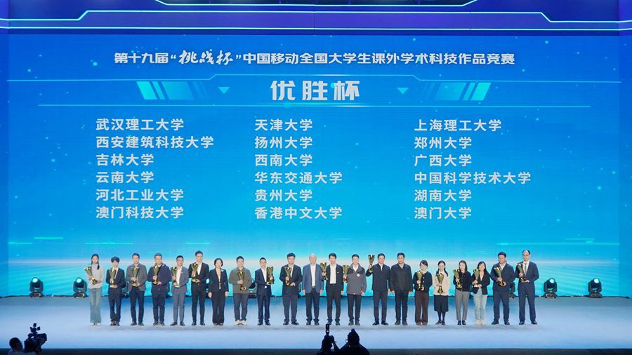 11月3日,第十九届“挑战杯”全国大学生课外学术科技作品竞赛在南京大学落幕。来自全国2700多所高校、300多万名学子的40余万件作品参赛,共有640件作品入围主体赛。经过激烈角逐,我校化学与材料科学学院2024级硕士研究生夏天谱团队的《点“丝”成金-表界面化学赋能超弹性超高温隔热材料》荣获主体赛特等奖,工程科学学院2025级博士研究生张子涵团队的《陆相页岩油增产和碳埋存的微观力学理论和宏观工程应用》、未来技术学院2022级博士研究生付礼中团队的《高性能量子模拟器以及在变分量子算法的应用》和少年班学院2022级本科生卢扬衡团队的《噪声自适应神经网络量子态:面向NISQ时代的高保真度量子化学计算范式》在“揭榜挂帅”专项赛中荣获特等奖,我校再次捧得大赛“优胜杯”。创新创业学院、校团委主要负责人和相关老师全程带队并指导参赛团队。