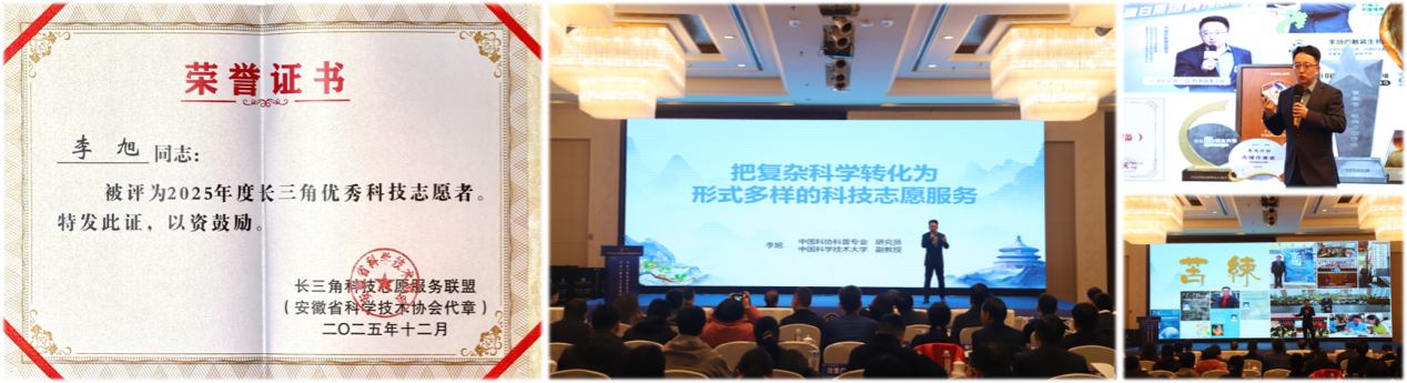 12月4日,应长三角科技志愿服务联盟(由江浙沪皖三省一市科协共同组成)邀请,李旭在联盟年会上作为优秀志愿者代表作大会发言,分享了其在科技志愿服务方面的实践经验。