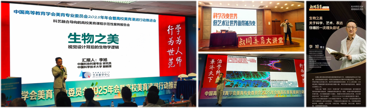 在中国科大本科生院及艺术教育中心支持下,由李旭与南京艺术学院陶霏霏副教授共同开设的《生物之美——视觉设计背后的生物学逻辑》课程,入选中国高等教育学会美育专业委员会“科艺融合导向的高校美育课程示范性案例”,并受邀在10月19日美育专委会年会主论坛作大会报告。该课程受到全国高校美育界同仁广泛关注,李旭获多所高校邀请进行交流,先后赴杭州师范大学等单位开展科艺融合美育探索合作。