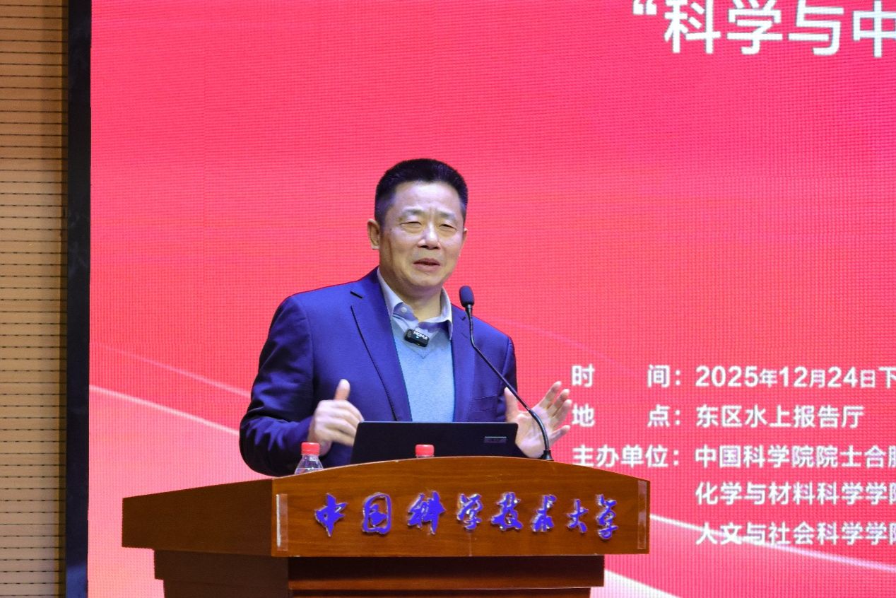 12月24日下午,“科学与中国”——第34期“众言沙龙”活动在水上报告厅举办。本期活动由中国科学院院士合肥联络处/党委教师工作部、人力资源部、化学与材料科学学院党委、合肥微尺度物质科学国家研究中心党委、人文与社会科学学院党委、教育基金会联合主办,邀请中国科学院院士、化学与材料科学学院徐铜文教授作为嘉宾面对面交流。校党委常务副书记蒋一主持活动,有关单位负责人和200余位校内师生参与交流。