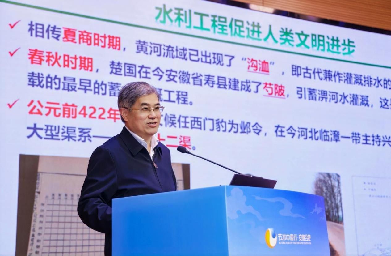 朱青立足安徽水情,解读《引江济淮与河湖复苏和水网构建》,系统阐述引江济淮工程在保障区域供水、复苏巢湖生态、服务国家水网建设中的战略意义与工程成就,生动展现了重大水利工程在服务区域发展、守护绿水青山中的关键作用。