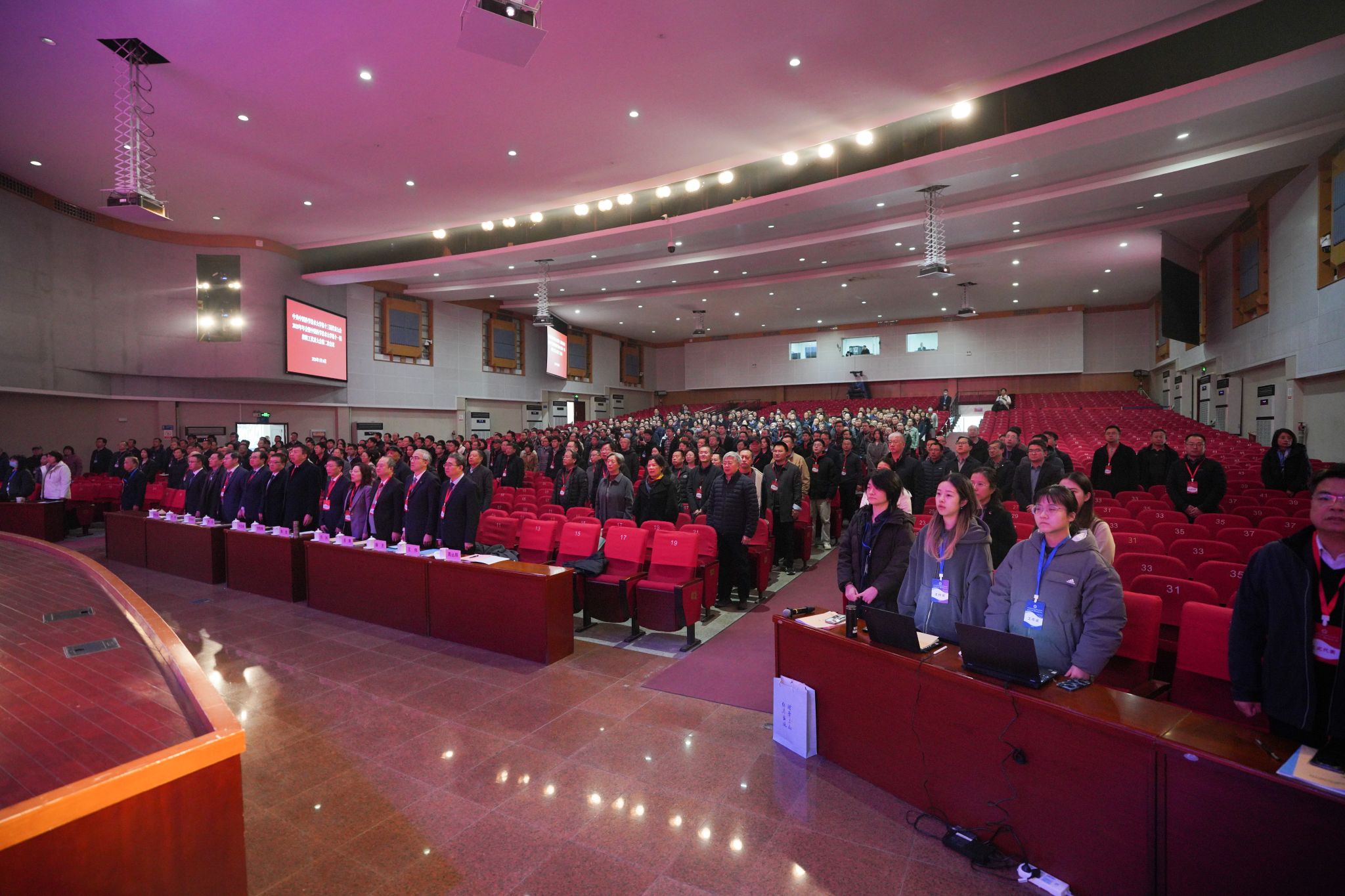 大会在庄严的国歌声中拉开序幕。