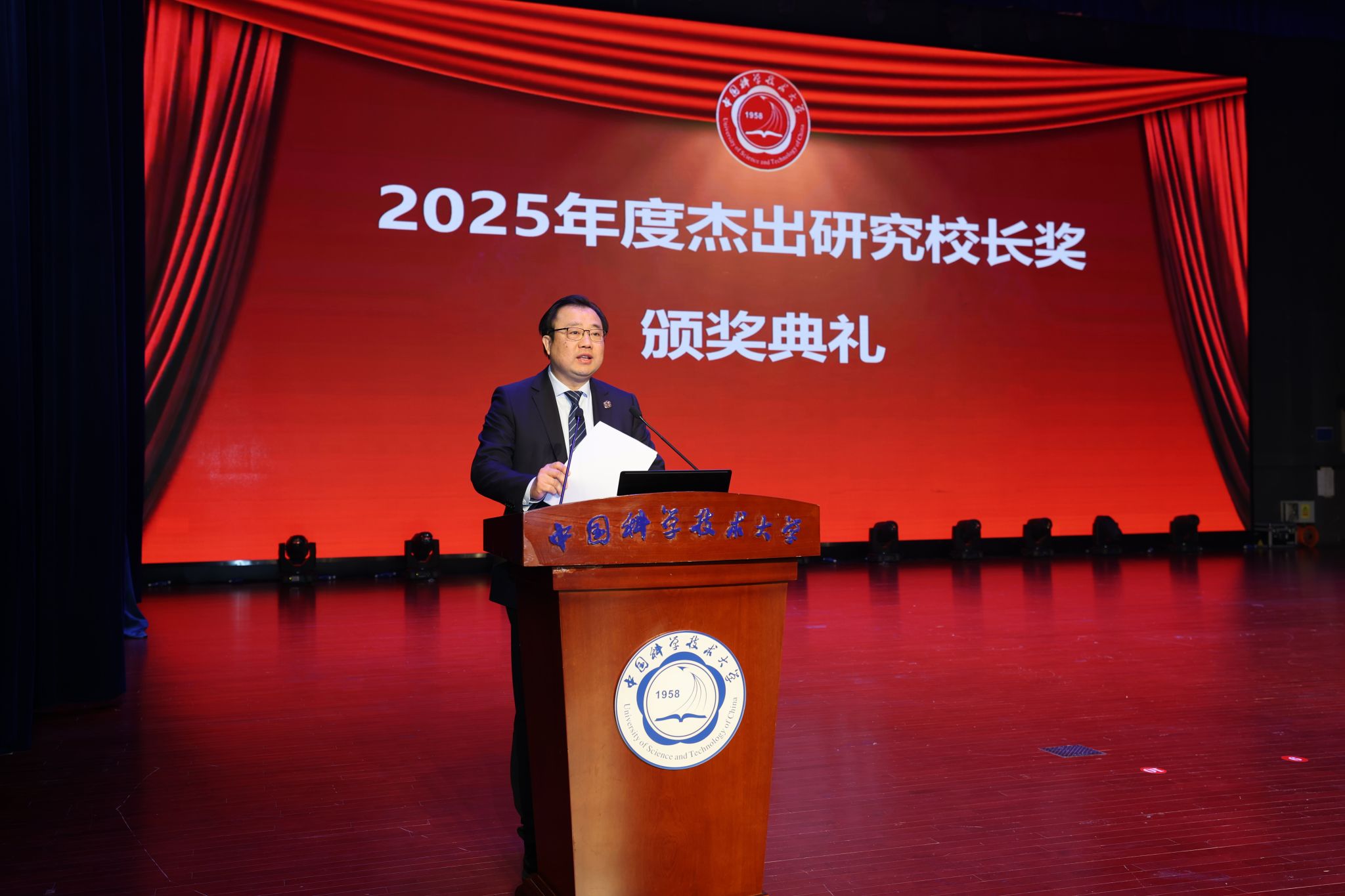 会上,党委常委、副校长傅尧宣读2025年度杰出研究校长奖表彰决定,宇宙大尺度结构团队、微尺度集成影像中心团队、超导量子计算研究团队、双极膜重水解离制备氘代化学品团队,金刚石量子器件与应用研究团队、行星内部物理团队、量子微纳卫星研究团队、孙成特任教授、路军岭教授和武晓君教授、肖正国教授因在科技创新活动中作出重大成果获得表彰。舒歌群、常进共同为获奖团队、获奖者颁奖。