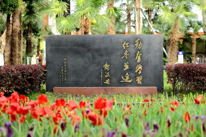 中国科大校风碑是学校重要文化地标之一,坐落于郭沫若广场和水上报告厅之间。