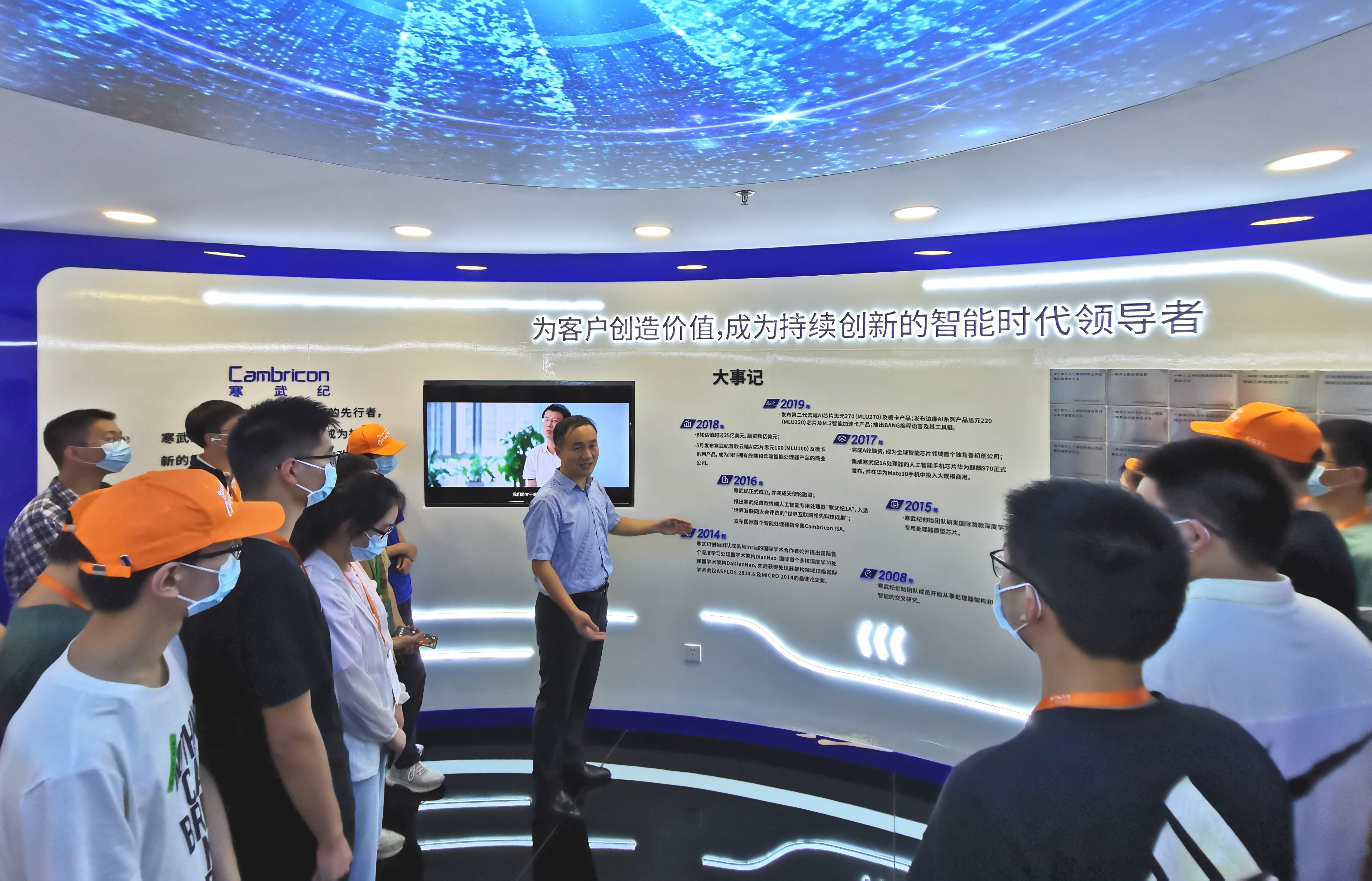 2021年7月29日,寒武纪公司胡帅(01少)总监向少年班学院蔷薇访学团介绍公司情况。
