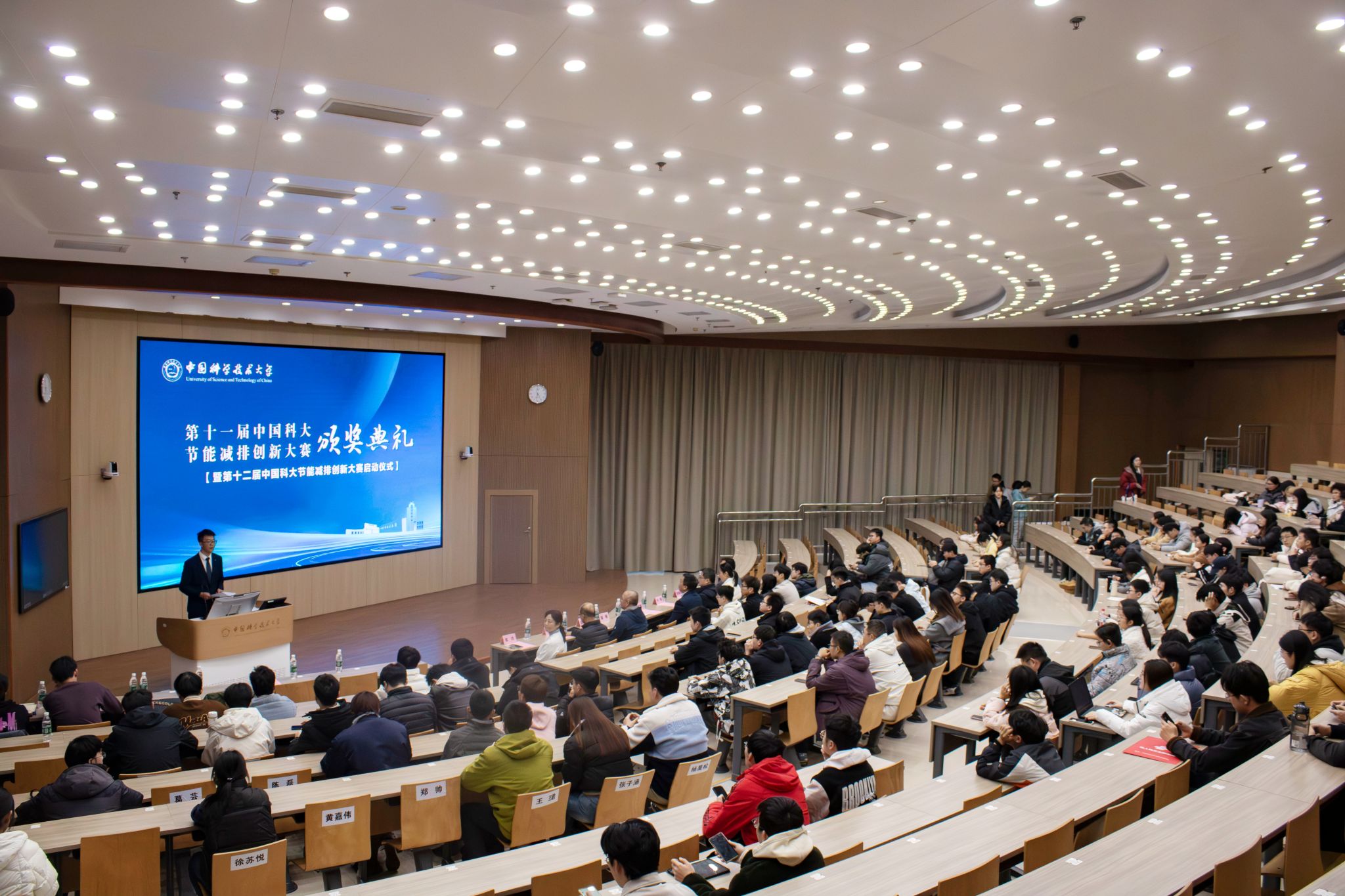 11月18日下午,中国科大第十一届节能减排创新大赛颁奖典礼在西区3B103多功能教室隆重举行。校党委书记舒歌群、机关相关部门及院系负责人、获奖团队及师生代表出席了本次典礼。