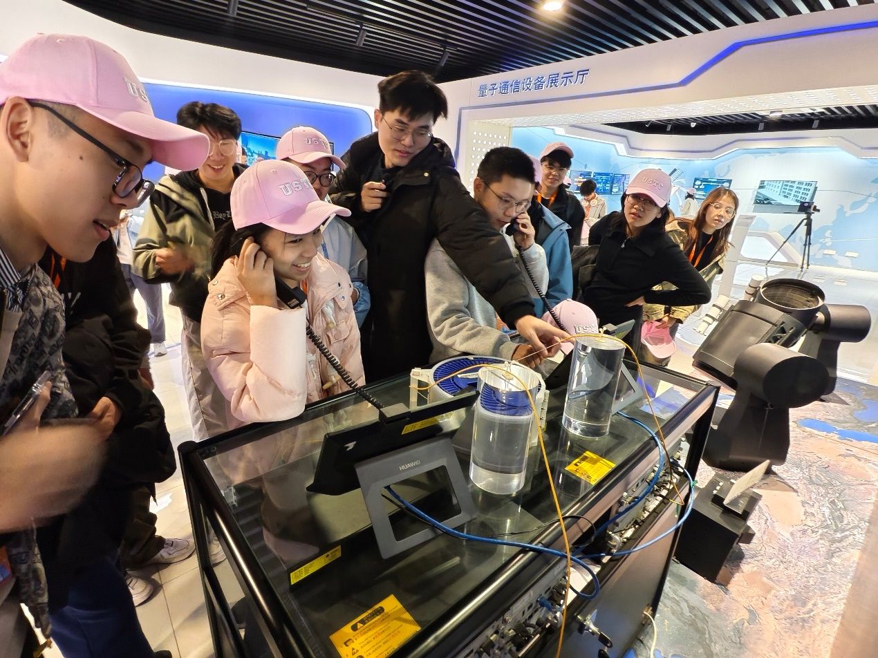 7日上午,游学团来到中国科学技术大学上海研究院。在讲解员的引导下,同学们走进量子保密通信上海控制中心,参观相关实验平台与展示系统,聆听量子方向专业讲座,深入了解量子通信的基本原理、关键技术突破及在国家“天地一体”量子保密通信网络中的应用实践。面对一件件高精尖设备、一个个标志性科研成果,同学们真切感受到学校科研团队在国家重大科技任务中的主力军作用,不少同学由衷感叹:“课堂上学到的基础理论,在这些工程化应用和系统平台中发挥着关键作用。”大家纷纷表示,将更加坚定在基础学科和关键核心技术领域深耕钻研的信心与决心。