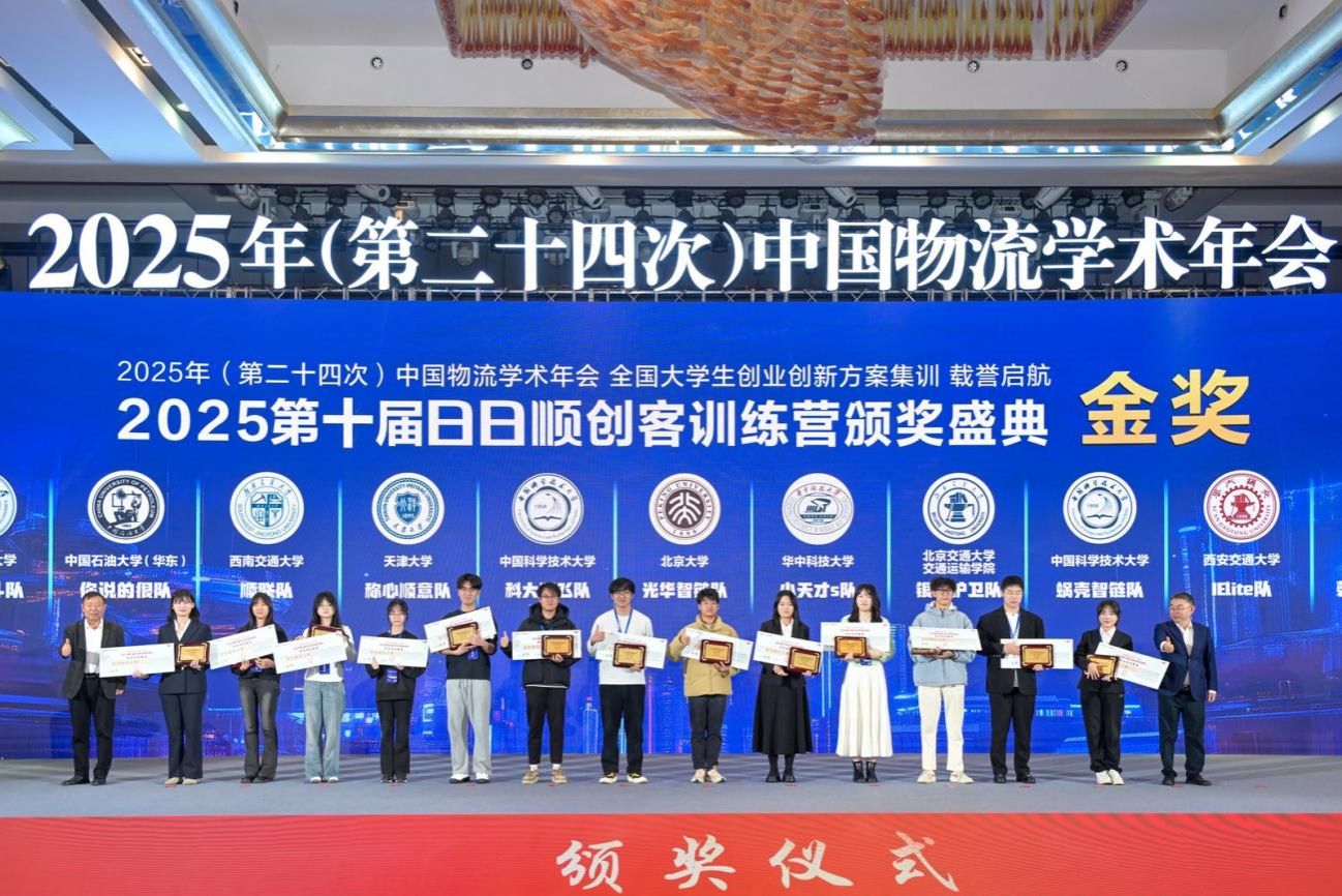 11月28日至30日,由中国物流学会、中国物流与采购联合会主办的2025年(第二十四次)中国物流学术年会在湖北武汉召开。作为大会同期的重要活动之一,第十届“日日顺创客训练营”“C轮训”环节圆满举办,来自全国高校的34个创业创新方案脱颖而出,斩获金、银、铜奖。中国科大管理学院两支学生团队凭借扎实的专业功底和突出的创新实践能力,双双荣获金奖,为学校赢得了荣誉。